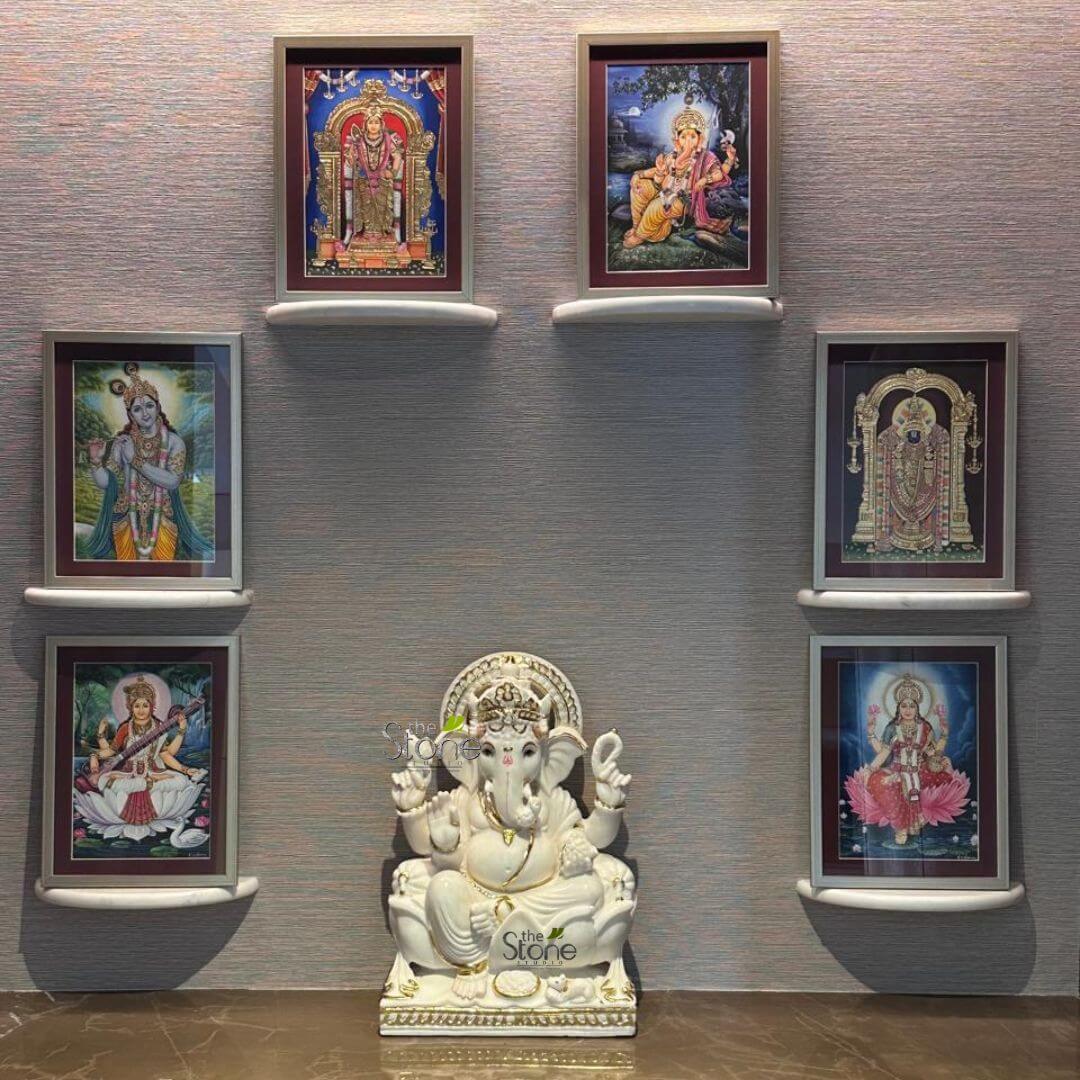 - Ideal for home shrines or as a striking focal point, the white marble finish adds an element of purity and grace.