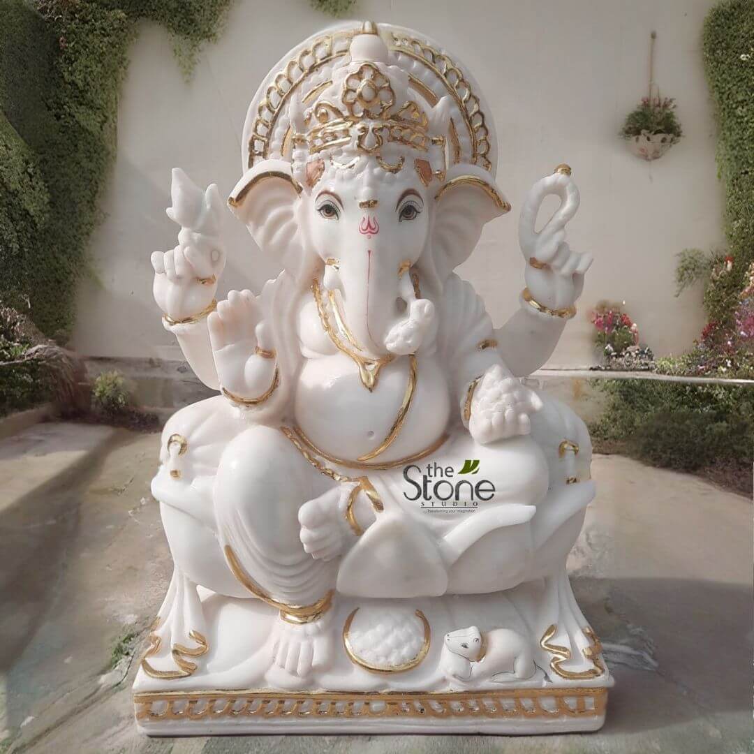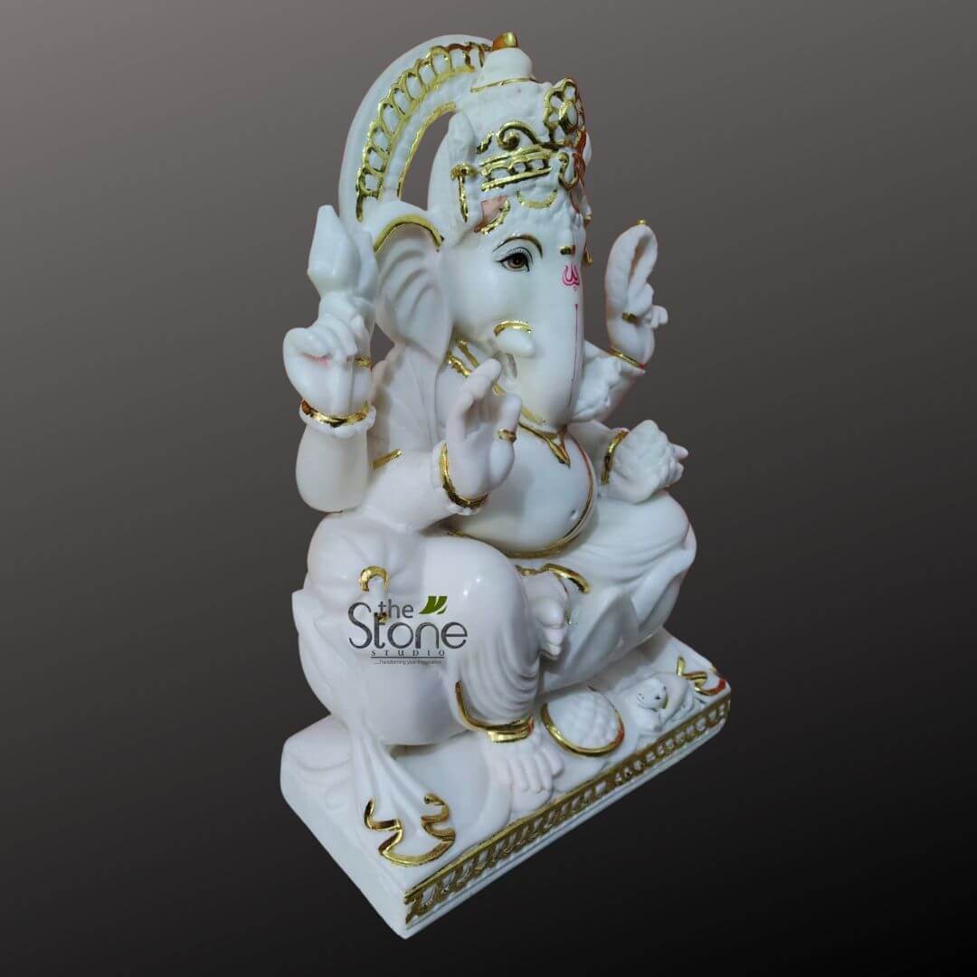 The material used in it is marble. This sculpture is wonderfully crafted by our best artisans. For more such statues browse our website. If you still don’t get what you want, our artisans will craft your specified designs of a 1.5 feet marble ganesha statue with utmost care and love.