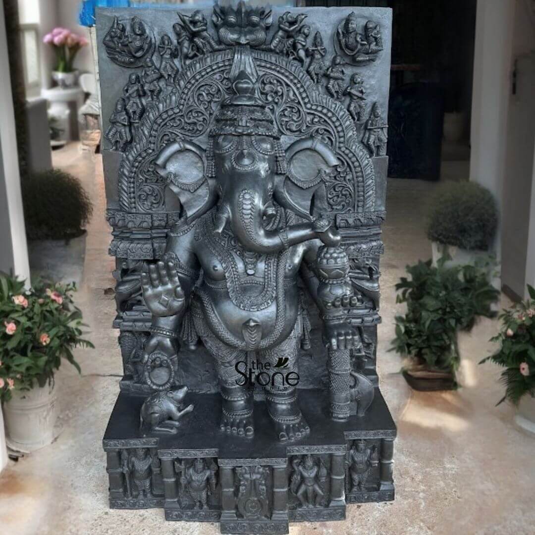 - Creating a focal point: To bring attention to your temple, home, or gardens, provide a central point of attraction, consider placing a distinctive stone Ganesh sculpture.