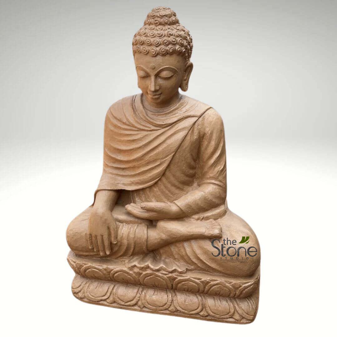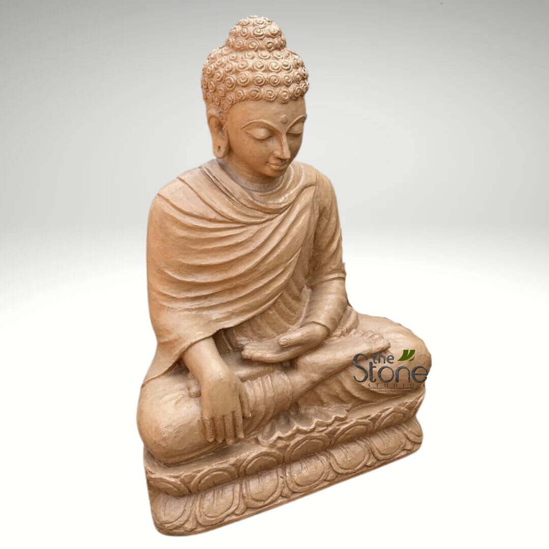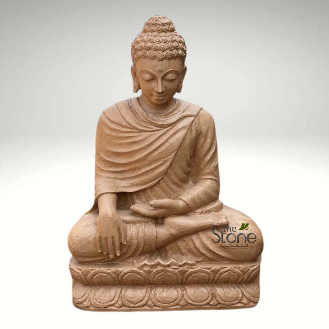 Bring peace and tranquility to your surroundings with this exquisitely handcrafted 2.5ft Buddha statue made from premium sandstone.